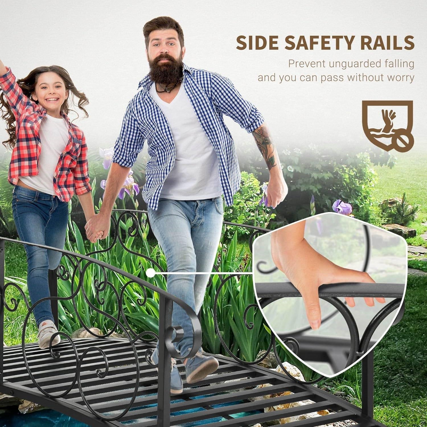- Outdoor Heavy Duty Black Metal Arch 7-ft Garden Bridge with Side-Rails