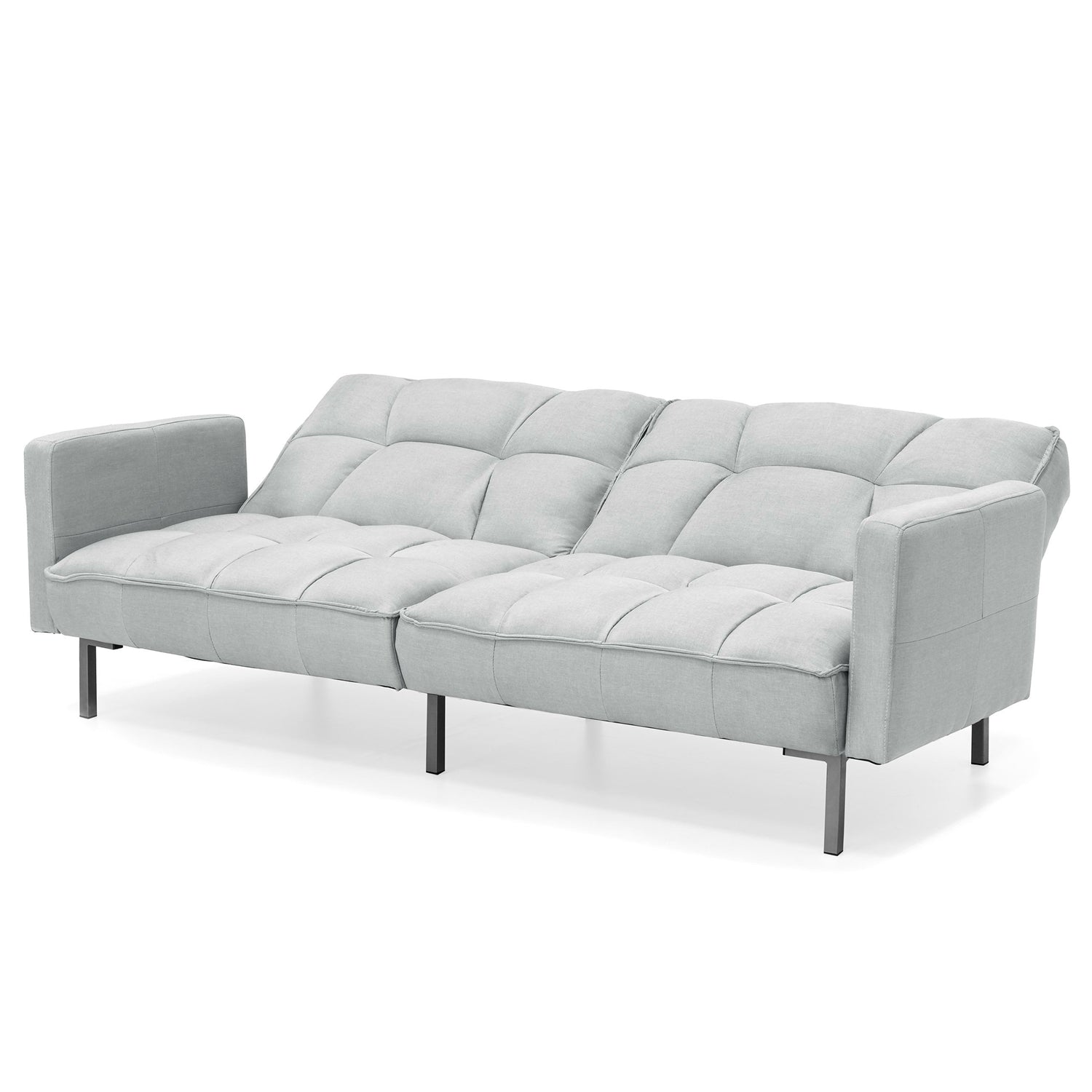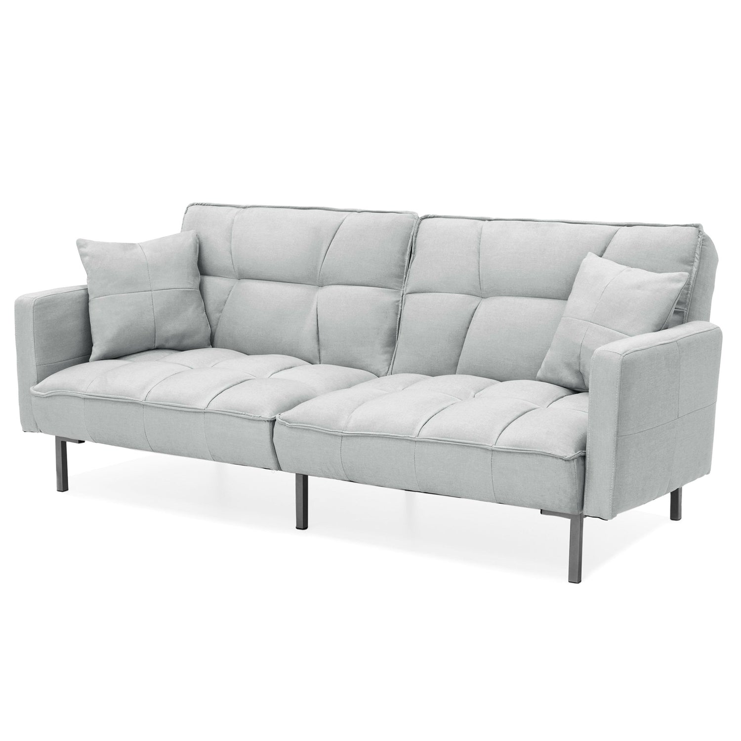 Plush Gray Split-Back Design Convertible Linen Tufted Futon w/ 2 Pillows